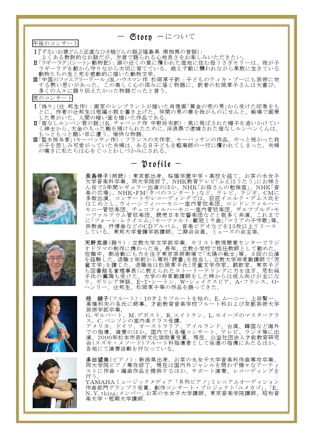 フルート桂綾子 ピアノ多田望美 チェロ谷口節夫 朗読長島伸子 語り天野克彦
