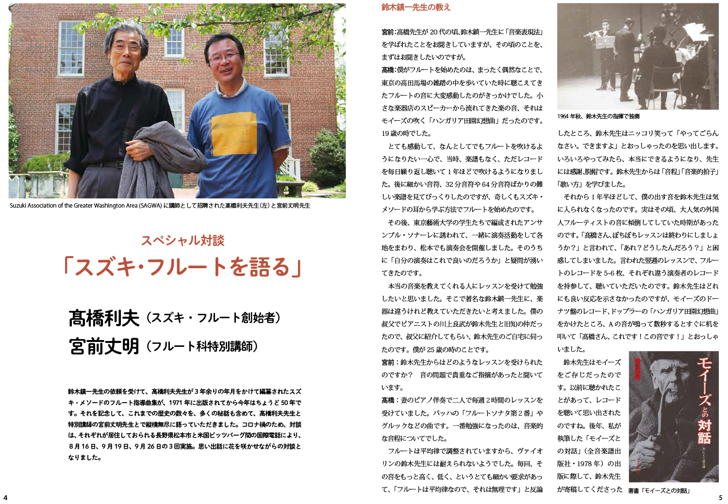 この機会に、スズキ・メソードのフルート科誕生の奇跡のような物語、そして、その後の歩みを英語版と日本語版の両方でお楽しみください。そして、あらためてスズキ・フルートの世界を味わってください。