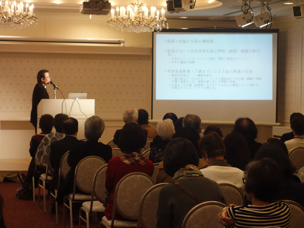 スズキ・メソードと東大との共同研究の第2論文の報告をうかがいました。スズキ・メソードではあたりまえと思っていた事実には科学的論拠があったこと。どのように実験し、結果を得ていくのか大変興味深いお話でした。また東会長もご一緒ですと場もなごみ、堅いイメージの研究にも親しみをおぼえることができました。第3弾の研究ではフルートの生徒さんも対象になるとのこと、ぜひこの機会に東大との共同研究に参加してみてはいかがでしょうか。世界が広がることでしょう。