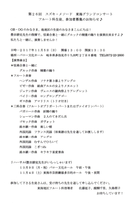 今年も全国よりフルート科指導者が松本に集い、宮前丈明先生を講師にお迎えしての研究の場が与えられましたこと、深く感謝いたします。
