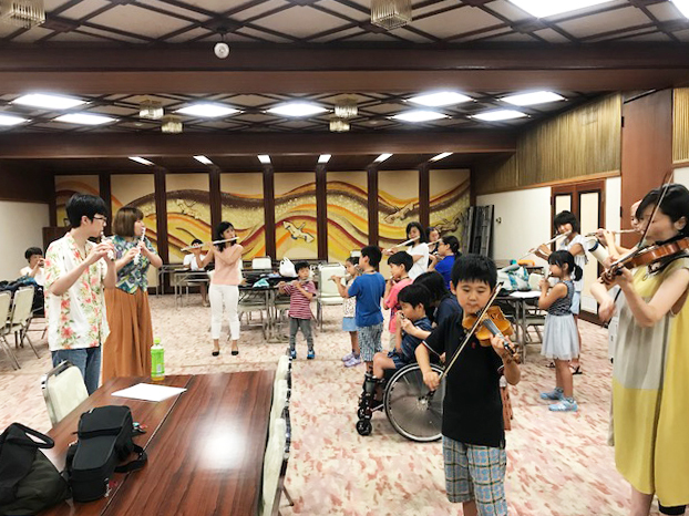 曲のイメージを自分で何色かを想像して吹いてみたり、リズム遊びをしてみたり、先生たちの様々なアイデアと工夫が散りばめられたレッスンに生徒たちも集中して、時には楽しくはしゃぎながら取り組んでいました。